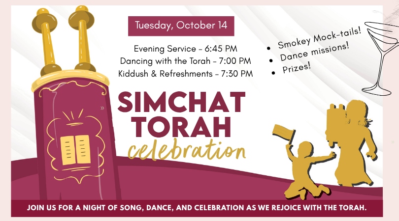 Get ready for the most joyful night of the year — Simchat Torah! Bring the whole family for an evening of dancing and celebration as we rejoice with the Torah.